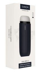 Vollautomatischer und interaktiver Masturbator Sam Neo 2 von Svakom mit Vibration und jetzt noch stärkerer kontrahierender Saugfunktion. Dazu die raffinierte Extended O‘ Funktion zur Verlängerung des Höhepunktes. Für individuelle intensive Blowjobs bequem per App – einfach zurücklehnen und genießen!