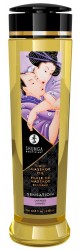 Luxuriöses Erotic Massage Oil Sensation von Shunga mit sinnlichem Lavendelduft, der bei der Solo- oder Partnermassage die Sinne weckt und Lust auf mehr macht! Das vegane Massageöl besteht aus 100% kaltgepressten natürlichen Ölen und enthält hautpflegendes Vitamin E. Es gleitet sanft und leicht über die Haut, ohne ein unangenehm fettiges Gefühl und Rückstände zu hinterlassen. Im Gegenteil, es pflegt die Haut seidig weich! Dazu ist sehr ergiebig für viele sinnliche und leidenschaftliche Ganzkörpermassagen.240 ml.