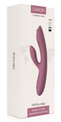 Der ideal geschwungene Rabbitvibrator Trysta Neo von SVAKOM verwöhnt zugleich Vagina und Klitoris mit vielseitigen Vibrationen. Die sich rauf und runter bewegende Massagekugel im Köpfchen stimuliert dabei insbesondere die G-Zone. Einfach per Knopfdruck lassen sich die leisen Funktionen bequem steuern und kombinieren. Mit der SVAKOM-App sind auch individuelle Vibrations-Anpassungen, Fernspiele und Interaktionen mit dem Partner oder der Partnerin möglich. Und mit der FeelConnect-App können auch interaktiv Videos und Webcams genutzt werden.5 Vibrationsmodi in jeweils 5 Intensitäten sowie 3 Geschwindigkeiten der beweglichen G-Punkt-Massagekugel sorgen für viel Abwechslung bei der Dual-Stimulation. Auch der zusätzliche SVAKOM Intelligent-Modus, der einen realen Sex-Rhythmus nachahmt. Die Memory Funktion merkt sich beim Ausschalten den zuletzt verwendeten Vibrationsmodus. Dazu gewährleistet die praktische Tastensperre diskreten Transport und Aufbewahrung.